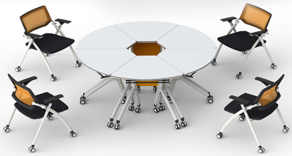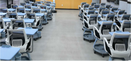 □中心研讨型——兼顾授课与研讨,教师讲桌居于中心位置,改变传统教师角色,拉近师生距离。适合分组展示,促进互动交流。
