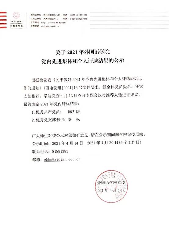 师德师风投诉邮箱:ylchen@xidian.edu.cn