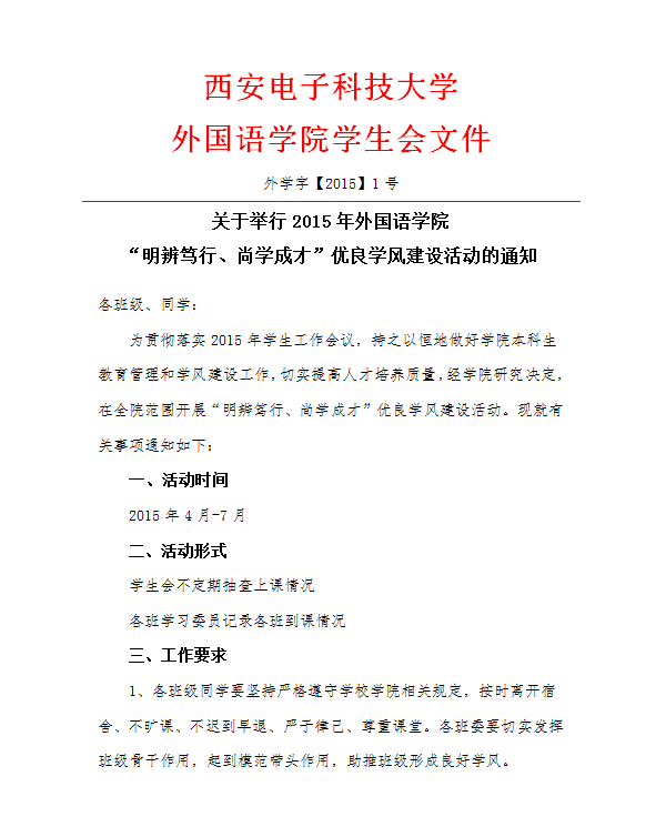 关于举行2015年best365官网登录入口“明辨笃行、尚学成仁”优良学风建设活动的通知