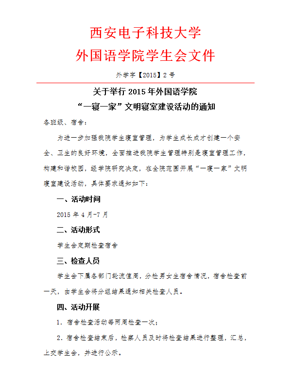 关于举行2015年best365官网登录入口“一寝一家”文明寝室建设活动的通知
