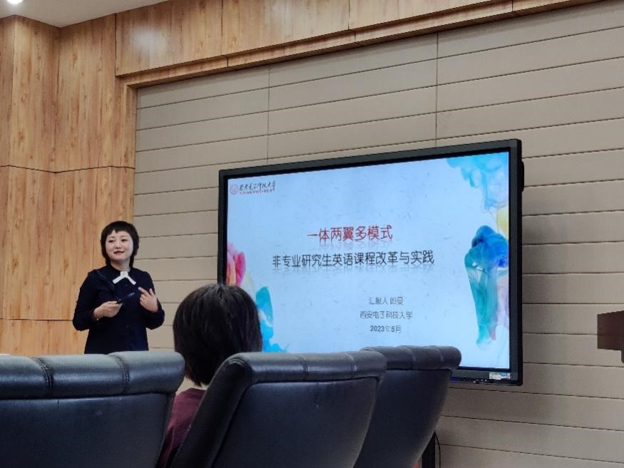 分论坛上,与会教师围绕新时代研究生公共英语教学的课程思政建设、人才培养、课程设置、教材建设以及教学新生态等主题展开探讨,并结合课程教学实践各抒己见。郎曼的报告从我校非专业研究生英语课程改革与实践的成果背景、内容、创新点和推广四个方面展开,全面介绍了极具西电特色和推广价值的“一体两翼多模式”教学改革框架,为其他高校研究生人才培养提供了借鉴与参考。