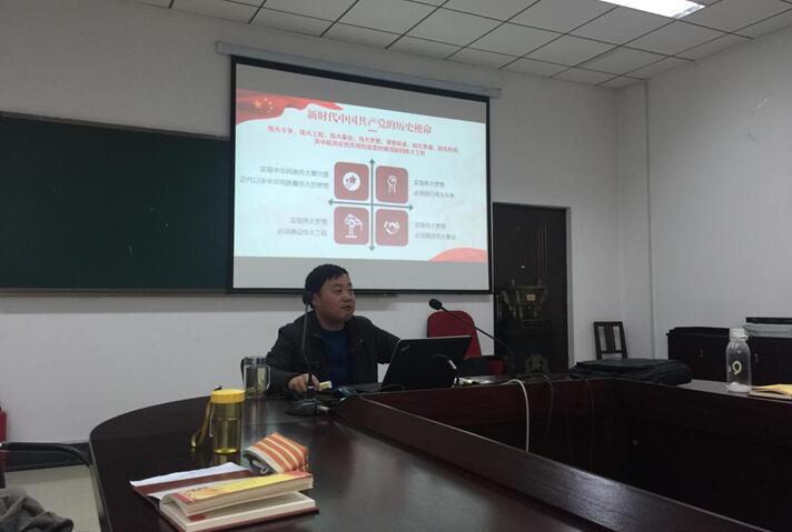 会议伊始,院党委副书记独国社亲切询问大家有关十九大报告精神的学习情况,并向全体学生党员介绍了此次会议学习的重点内容——学习十九大概况及其主要内容。他重申了大会主题,强调了我国在经济建设、深化改革、思想文化、生态文明等十方面所取得的历史成就,进一步阐述了两个重大判断,以及新时代我党所肩负的历史使命。在谈到新时代中国特色社会主义思想与基本方略时,他列举身边相关事例对全体学生党员进行教育,让原本抽象的概念变得鲜明具体,同时也使得大家切身感受到国家日益发展所带来的人民生活上的巨大变化。