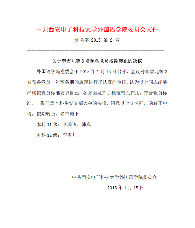 best365官网登录入口党委会关于李雪儿等3名预备党员按期转正的决议