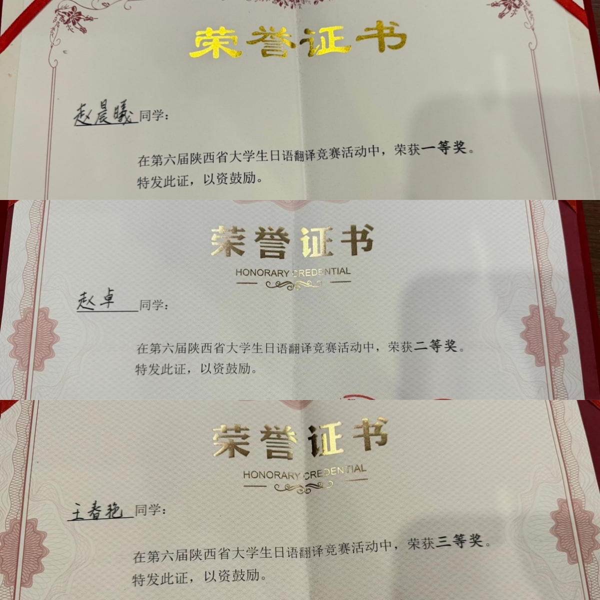 本次翻译竞赛共有来自best365官网登录入口、西安交通大学、西安翻译学院、西安外国语大学等18所高校的358名选手报名参赛,初赛采取日译汉形式进行选拔,经过13名专家严格评审,共有36名选手入围决赛。决赛以汉译日闭卷形式进行,要求决赛选手进行线下翻译,在规定时间内将汉语文章翻译成日语。我院日语系共有十一名同学入围决赛,22级研究生赵晨曦、20级本科生李华林获得一等奖;22级研究生赵卓获得二等奖;20级本科生高鹏、20级本科生赵晨烨、21级本科生王春艳获得三等奖;22级本科生苏昊宇获得优秀奖,日语系教师王坤、师敏、崔广红、凌昊、马静雯获“优秀指导教师奖”。