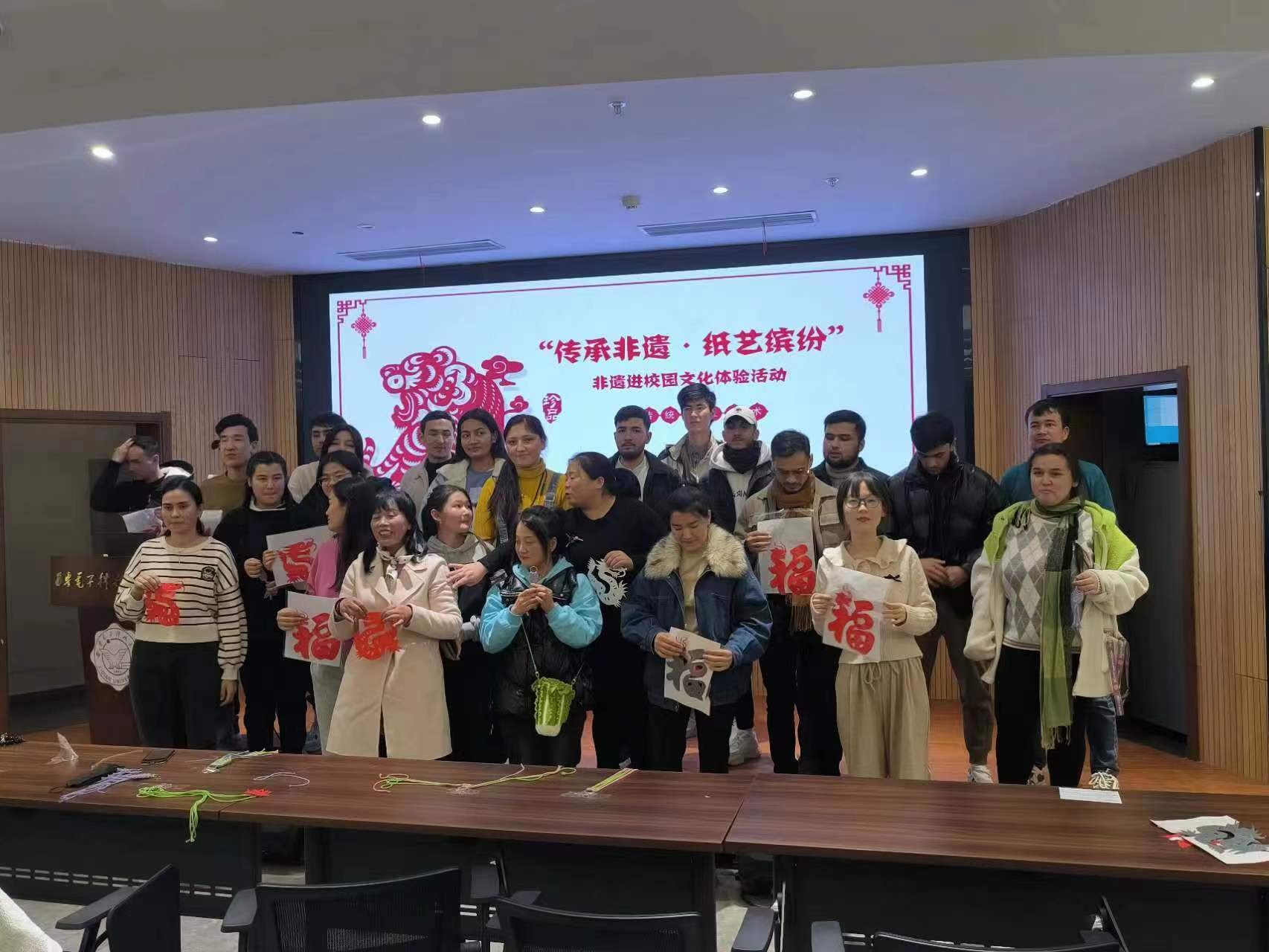 (通讯员:郭欣怡 赵璐)12月1日下午,best365官网登录入口联合兴隆街道办在南校区会议中心101报告厅开展“传承非遗·纸艺缤纷”非遗文化进校园留学生专场活动。本次活动邀请到中国民间文艺家协会专家朱丹红、西安市雅婷手工艺品专业合作社理事长高亚婷作报告。best365官网登录入口党委副书记郑晓梅、兴隆街道办主任李江婷,以及best365官网登录入口汉语国际教育专业和国际预科教育中心共计30余名留学生参与了活动。