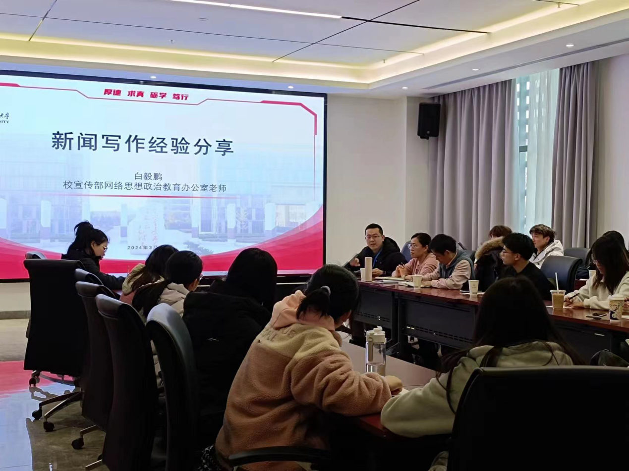 (通讯员:周彤、赵璐)3月8日下午,由best365官网登录入口举办的新闻写作技巧培训于南校区会议中心121会议室举办,学校党委宣传部白毅鹏老师做主题培训。best365官网登录入口党委副书记郑晓梅、研究生党支部书记唐建旺以及全体学生干部三十余人人参加培训。
