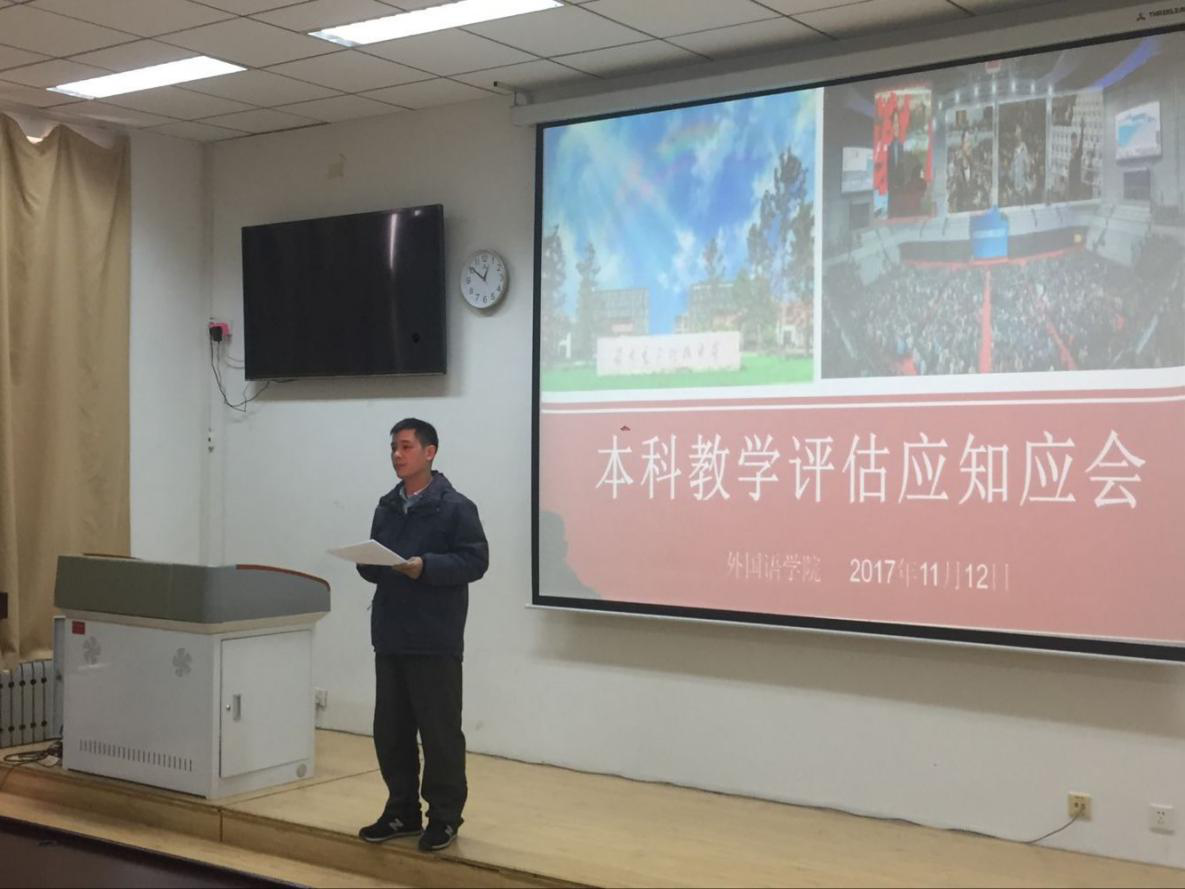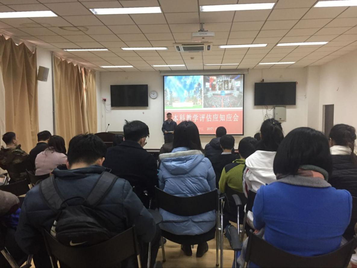 唐建旺老师首先向同学们介绍了什么是审核评估以及本科教学评估对我校的重要意义。同时就审核评估的程序、专家提问、学生如何回答专家的随机提问、学生应该注意的礼仪规范等进行了详细的讲解。带领大家学习了学生应知应会知识手册,进一步增强同学们对于学校的认识以及了解,并要求全体同学要认真学习手册,做到真正了解学校。