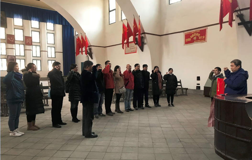 在中共中央七大会址遗址,外国学院党委书记杨跃同志做为一名普通党员和大家一起共同重温了入党誓词,大家面对鲜红的党旗一起进行庄严地宣誓。同志们感慨良多,纷纷表示要继承先辈革命精神,发扬延安精神,投身党和人民的教育事业,不断开拓进取,为实现民族复兴的中国梦而努力奋斗。