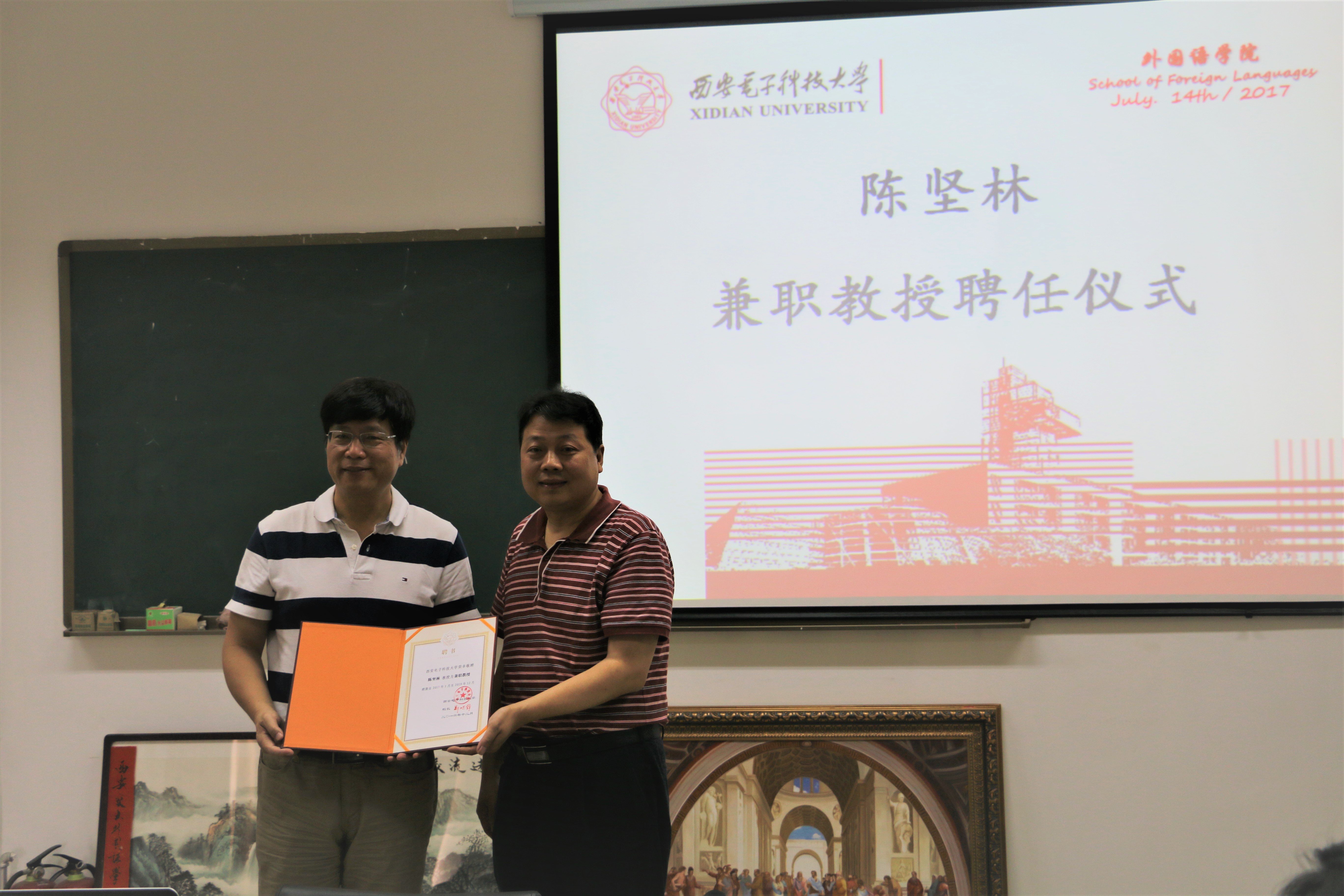 杨跃对陈坚林教授作了简要介绍,对他长期以来在学科建设、人才培养、科学研究等方面给予best365官网登录入口的帮助表示感谢。周燕来代表学校宣读了聘任决定,为陈教授颁发了聘书。英语系教师秦枫博士也发表了感言:“博士期间能进入‘陈家班’得到陈老师的指导,感到非常荣幸,陈老师对我们的寄语‘态度、意识、勤奋’成就了我现在的科研精神,他倡导的‘快乐学习、快乐生活’更让我感受到了学习就是生活中最大的快乐。”陈坚林教授表示,best365官网登录入口是我党我军创建的一所高水平大学,受聘兼职教授既是一种荣誉,更是一份责任,“我将切实履行兼职教授的职责,为best365官网登录入口的发展贡献自己的力量。”