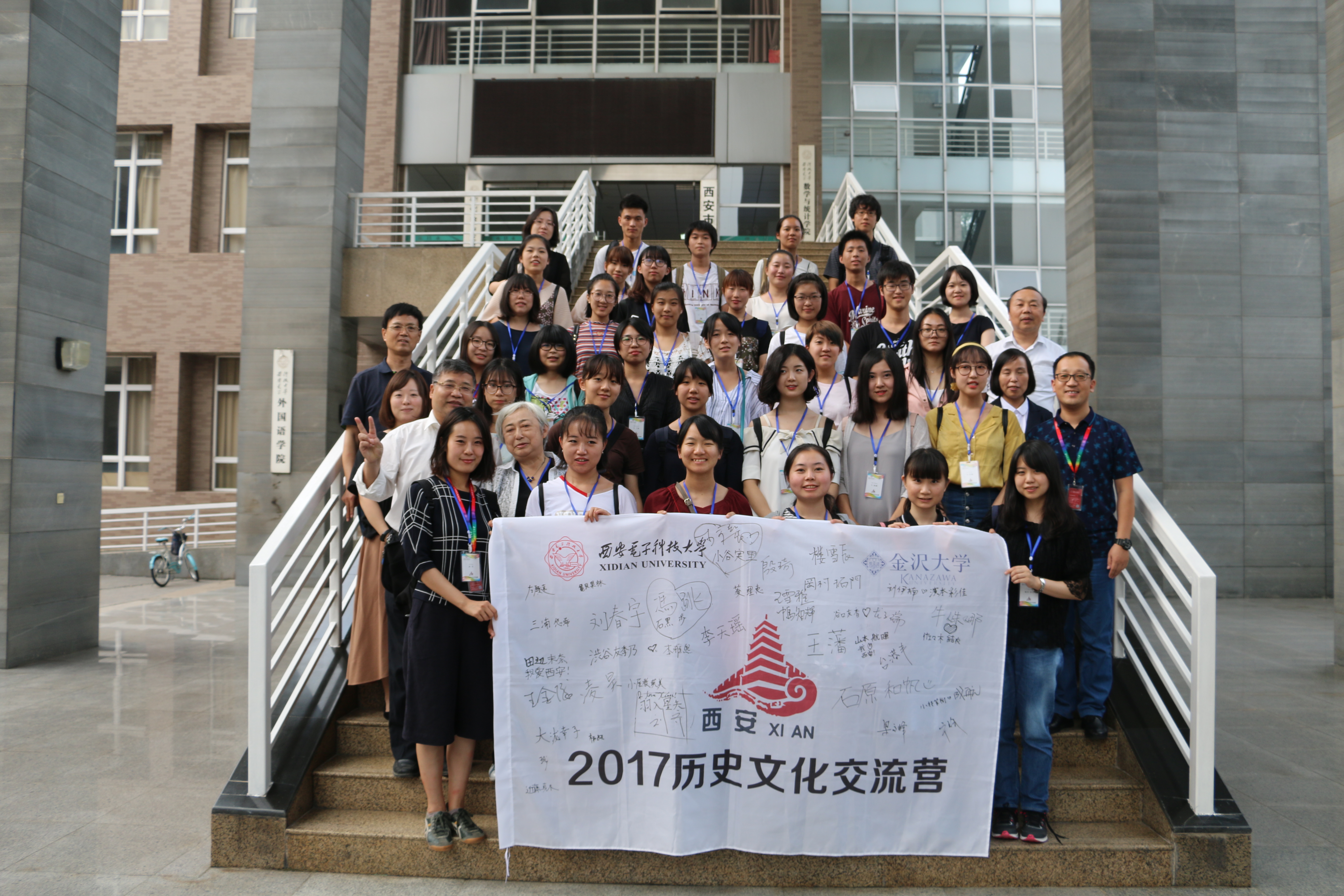 9月11日,金泽大学与我院日语系共32名学生参加了长安历史文化讲座,对中国・西安的历史、文化、名胜等有了初步的了解。12日至13日,两校学生一起参观了陕西省历史博物馆、兵马俑、青龙寺、古城墙、回民街等具有悠久历史、并与日本有着深厚渊源的名胜古迹,在实际走访中体验西安的历史文化和人文风情。14日,两校学生通力合作整理此次活动的心得体会,在两校的领导、老师面前进行了精彩的总结演讲和感想发表。