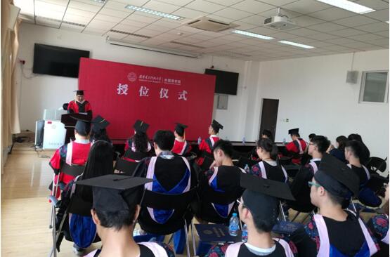 在庄严的国歌声中,我院2016届本科生学位授位仪式正式开始。国歌声毕,反映2016届毕业生大学四年生活的纪录视频《青春无悔》开始上演, 大家发出的笑声流露出了对大学生活的留恋与不舍之情。