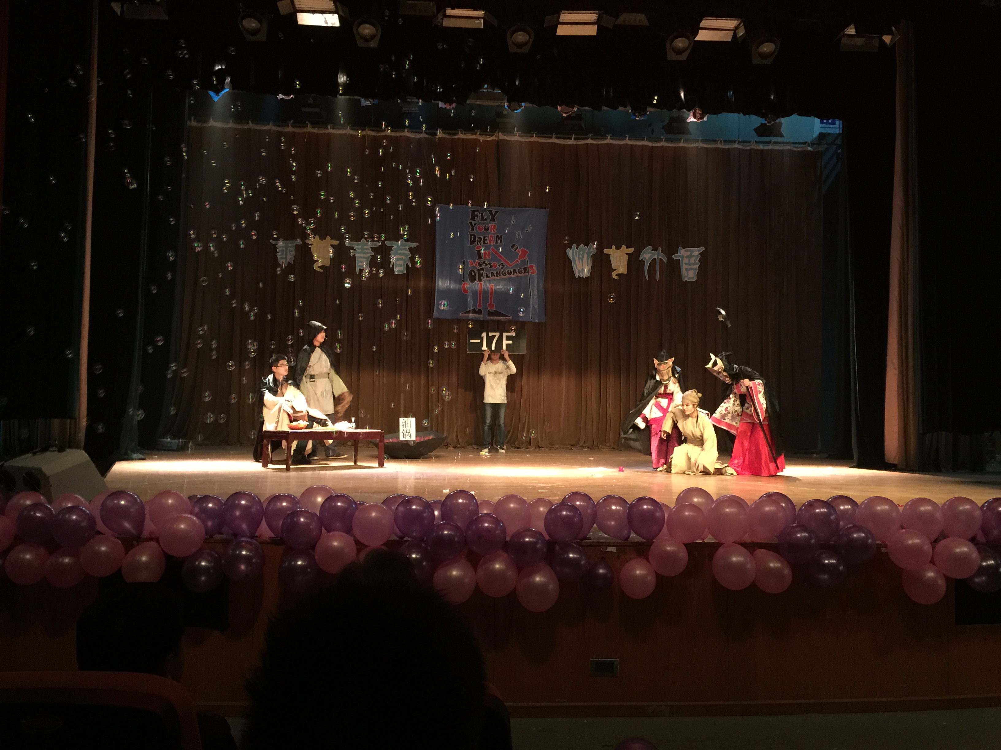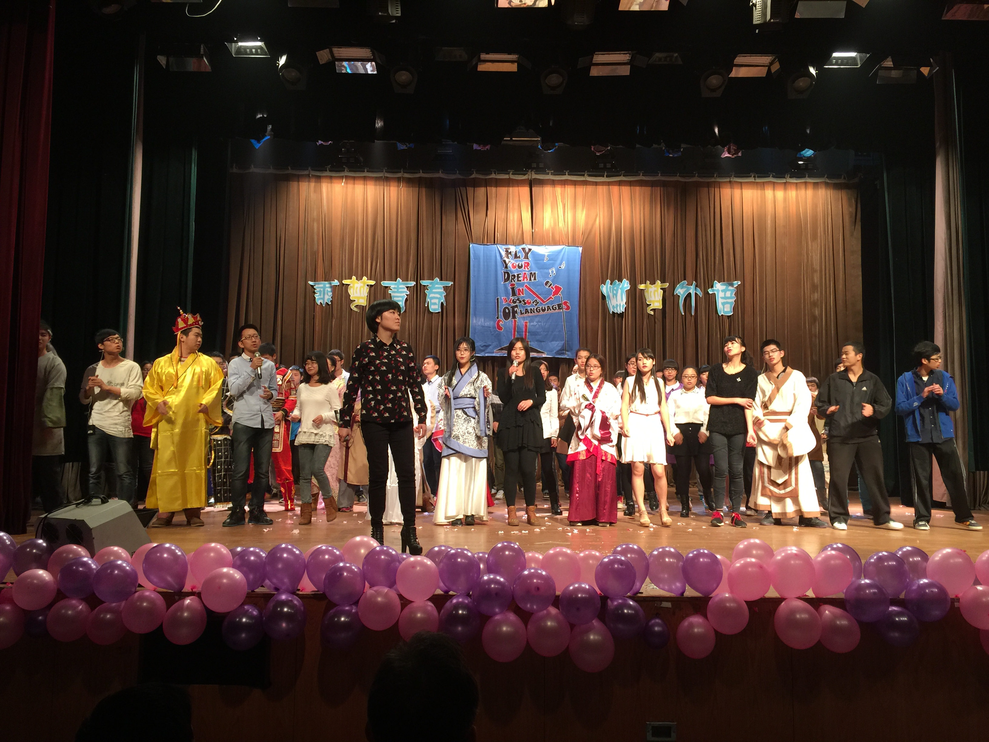整场晚会中由大二英语班学生改编的英文话剧《大话西游之月光宝盒》 、研究生的莎士比亚经典话剧《李尔王》 、以及大二日语班成功改编的日语话剧《武林外传》等戏剧,展示了同学们精湛的演技和出色的外语水平,演出赢得了观众们的阵阵掌声。本场晚会除了戏剧,还增加了许多形式多样、丰富多彩的优秀节目。如大二日语班的两名女生,带来了曾在全国Cosplay大赛上获奖的节目《千本樱•一夜物语》,让观众们耳目一新;大二英语班的美剧《生活大爆炸》的配音技惊四座,精彩纷呈;大一日语班的日文版《后来》,带领观众回到了懵懂的青涩岁月,感受到青春的无知与无奈;国际教育学院的四位外国友人为观众献上了拿手的RAP;日语老师陈会林和日语外教安中妙带来的歌曲《川の流れのように》,与大二英语班的两位同学带来的《我心永恒》,以及街舞社同学们酷炫的街舞、魔术,都赢得了观众的阵阵掌声,将晚会推向一个又一个高潮。
