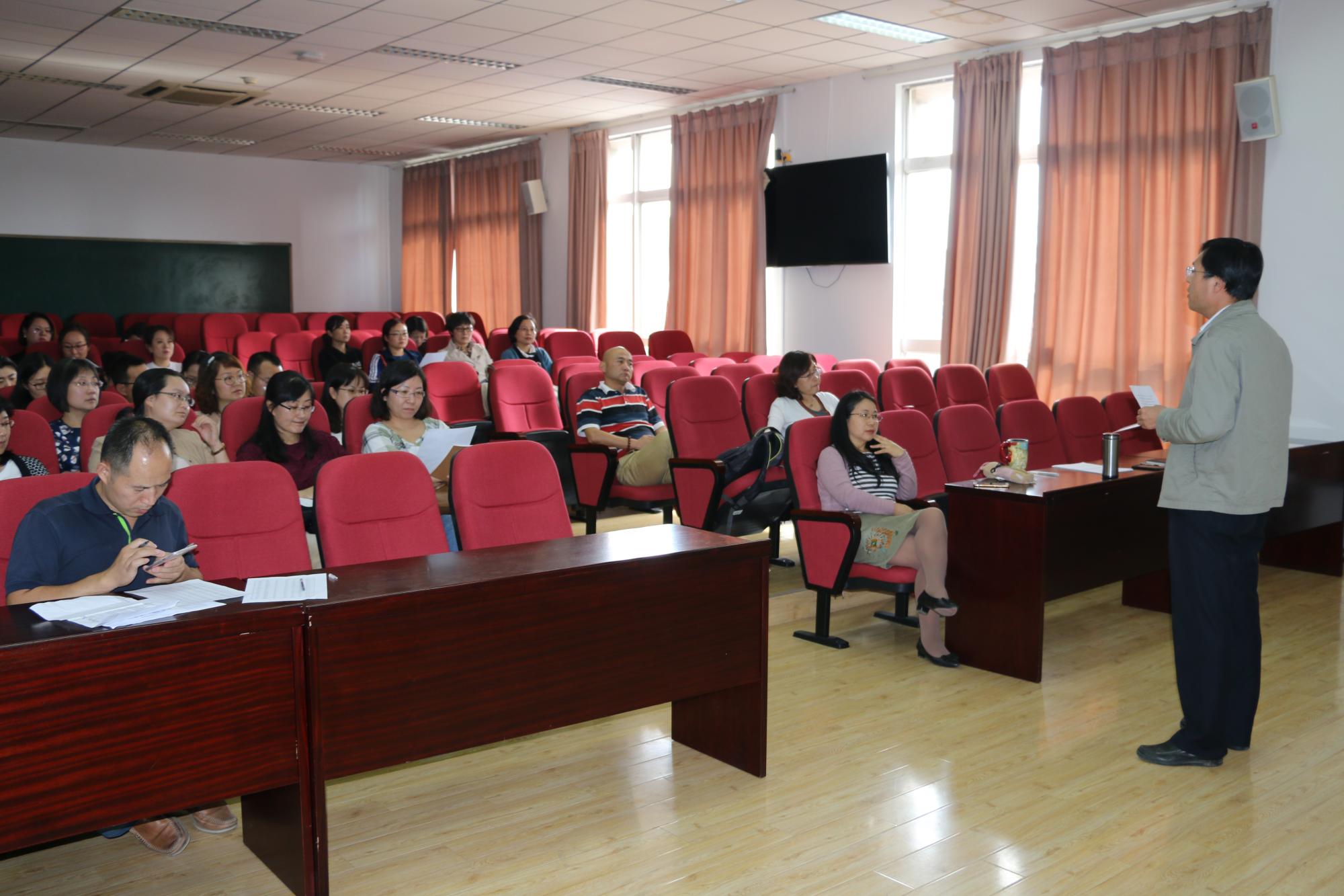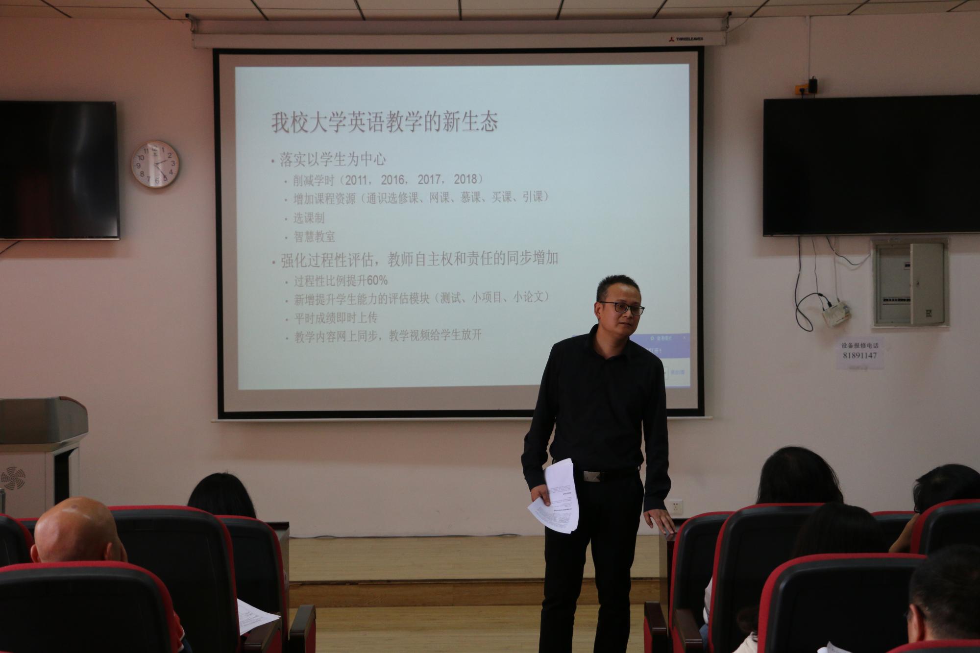 (通讯员:刘建树)10月9日,面对新的大学英语教学改革,在教学课时不断缩减、考核注重过程管理的新形势下,由我院副院长马刚教授主持、大学英语教学一部王娟老师、大学英语教学二部陈万庆老师主要汇报交流的“大学英语教学改革发展研讨会”在信远Ⅱ区402报告厅举行,以帮助大学英语教学一线的老师更好地探索如何在新形势下更好地完成大学英语教学任务。院长助理曹志宏老师以及两个大学英语教学部的部分教师参加了研讨会。