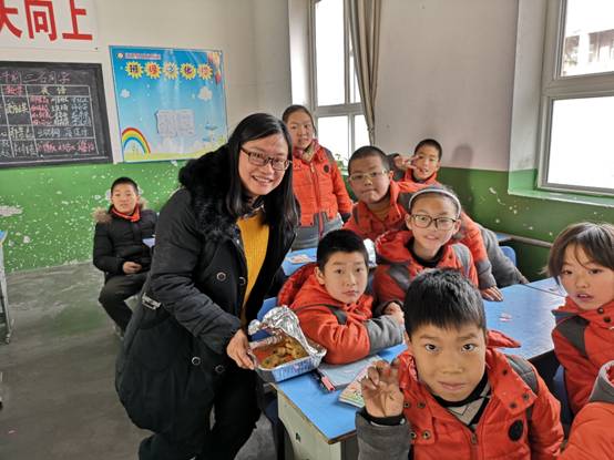 外籍教师Diane为第二次参加扶贫送教活动。行前,她亲手为孩子们烘制了新鲜的巧克力曲奇饼干,给孩子们带来了一个既可以品尝美食、又可以学到纯正英语的课堂。孩子们异常兴奋,在旁辅助的任利华和郭晓华老师也忙的不亦乐乎!