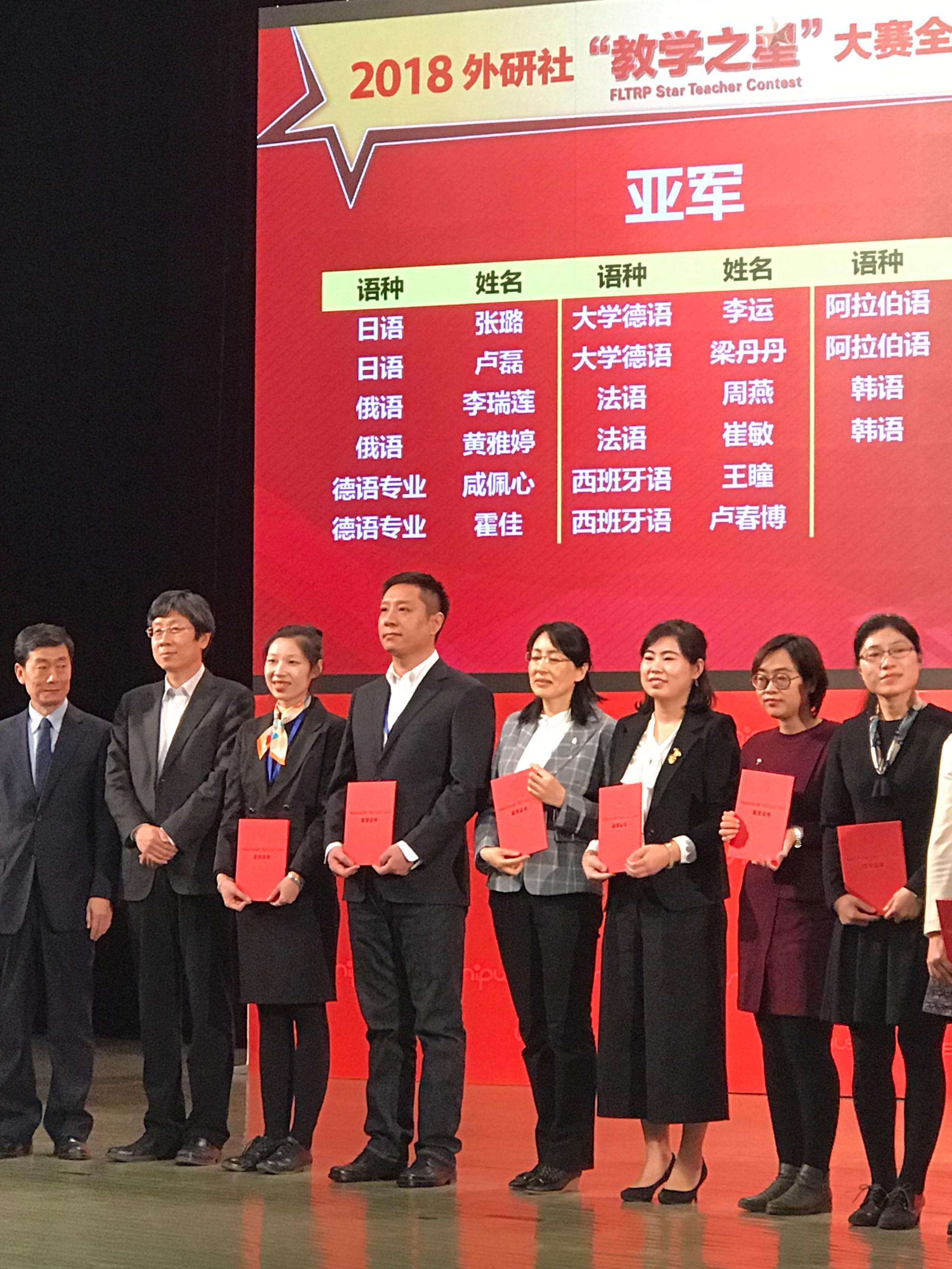 最终,卢磊老师荣获本次多语种“教学之星”大赛亚军!王金博老师荣获一等奖。两位教师均是首次进入决赛,为我校争得了荣誉。