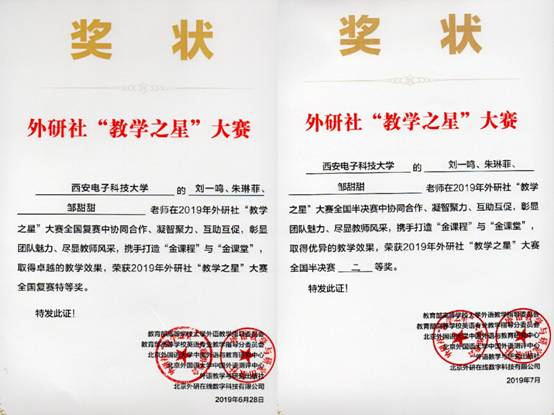 (通讯员:邹甜甜)2019年8月1日-4日,外语教学与研究出版社2019年全国高等学校英语类专业教学发展与创新“教学之星”大赛在武汉举行。我校best365官网登录入口刘一鸣,朱琳菲,邹甜甜三位老师组成的教学参赛团队荣获“教学之星”英语教学大赛英语类专业组全国网络赛特等奖,全国半决赛二等奖。