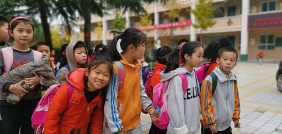 随后,志愿扶贫小分队师生党员与学校课间休息的学生们进行了交流互动。
