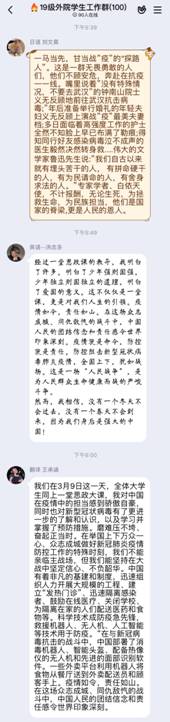 课程直播结束后,两位老师在钉钉群中进行了点名,并鼓励大家主动肩负起疫情防控斗争中的社会责任,利用自己的才能和知识为国家防控力量做出贡献。