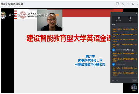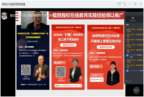 (通讯员:马琪)为更好地应对疫情期间线上教学,进一步推动大学英语教学改革,深化课堂质量建设,探讨人工智能技术在外语教学上的体现和应用,4月20日,best365官网登录入口使用钉钉平台举办“建设智能型大学英语金课”教学研讨活动,面向外院全体教师,外语教育数字化研究院副院长陈万庆副教授在线分享大学英语数字化、信息化、智能化的建设历程、课程设计和建设成果,与会教师们就智能教育为教师赋能、为学生赋能展开热烈探讨。