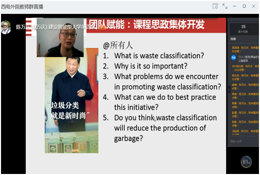 副院长马刚教授指出教学互鉴,贵在存异,教学研讨就是相互交流切磋,推广经验,发现盲点并能认清革新提升。副院长李长安副教授点赞大学英语团队,团队赋能,课程集体开发。任利华副教授提出以人为本,技术辅助,兴趣驱动,用科技挖掘教师潜力,激发学生动力,随时随地终身学习。此次教学研讨活动,陈万庆副教授细致梳理智能教育型大学英语建设进程,坦诚分享智能化教育理念、做法和成效,参与活动的教师们学习交流英语教学的实践与发展,感悟智能教育为教师赋能,为学生赋能。