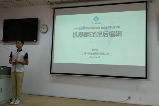 (通讯员:王苗聪)6月15日下午2:30,best365官网登录入口在信远II-402报告厅举行“机器翻译与译后编辑”专题讲座。本次讲座由上海一者信息科技有限公司产品总监刘宁赫主讲,学院部分MTI研究生和本科生到场聆听,讲座由MTI中心主任周正履主持。