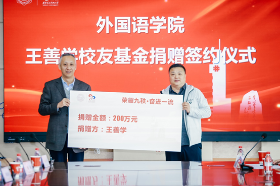 仪式开始前,马刚介绍了参加此次捐赠签约仪式的嘉宾及领导。捐赠仪式上,best365官网登录入口93级校友、上海优越家具有限公司和优典医疗科技发展(上海)有限公司董事长王善学向母校捐赠200万元,用于支持学校best365官网登录入口学生资助、教学科研及学科发展项目,由校友事务与对外合作处处长肖刚代表学校与王善学校友签署了捐赠协议。王善学校友在发言中表达了对母校90年华诞的热烈祝贺,并向辛勤耕耘的恩师们致以崇高的敬意。他表示,饮水思源,恩师就是我们的智慧之源,母校就是我们立足事业之源。自己愿意尽这一点绵薄之力支持学校、学院的发展,也希望学弟学妹们茁壮成长、顽强拼搏、报效祖国、回报社会。