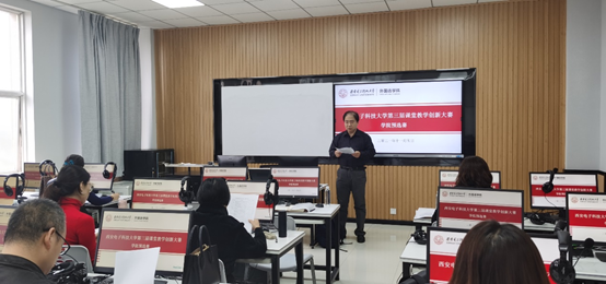 比赛开始前,教学副院长李长安老师指出,本次院预选赛的举办,旨在深入推进新文科建设,推动新技术和教育的融合,激发课堂教学活力,以赛促教,发挥课堂育人主阵地的作用,同时也为校第三届课堂教学创新大赛推荐优秀选手。