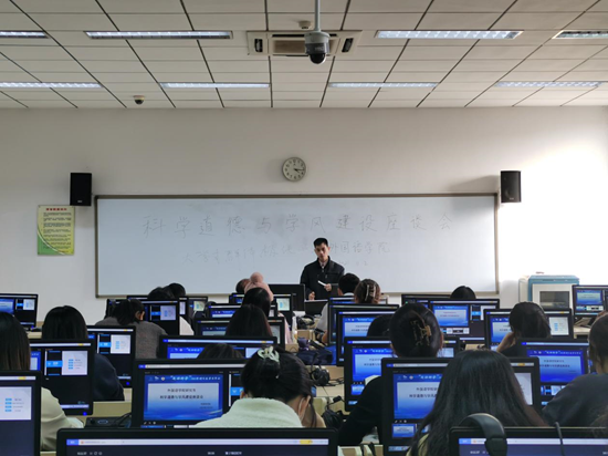本次活动,唐建旺老师主要从四个方面向同学们讲解什么是科学道德与学风建设。活动伊始,唐建旺老师谈到学风建设与学术诚信,强调论文写作过程中,引用他人文献和观点均要按照严格规范标明出处,不可随意编造、篡改数据,学术科研要做到实事求是。倡议同学们提升个人学术能力,积极参与学院组织的学术活动。