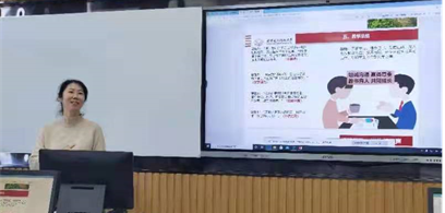 随后,高洋老师从“课堂的育人功能”角度分享实施课程思政,探讨教师如何身体力行地“守好一段渠、种好责任田”。她基于英语系专业课程教学实践,以倾听讨论和平等对话为主题做了课例分享,她表示,教师秉承初心教书育人,努力上好每一节课程,真诚对待每一位学生,就是课程思政。