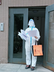 我部教师陈万庆加入北校区防疫志愿者队伍,承担消杀岗的工作,对家属楼外部进行消杀。任静和张莹加入南校区防疫志愿者队伍,承担物业岗和社区门卫岗的工作,帮助各组团老师进行住户登记、发放出入证明、引导核酸检测、辅助物资分发等工作。