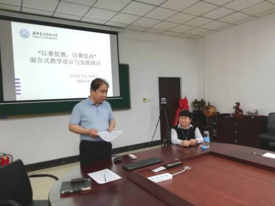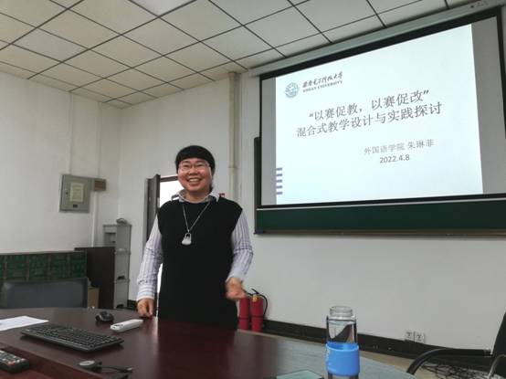 (通讯员:王燕萍)为进一步推动信息技术与高等教育深度融合,创新人才培养模式,大力开展混合式教学,best365官网登录入口于4月8日下午在信远II-424会议室举办了“以赛促教,以赛促改---混合式教学设计与实践探讨”教学沙龙活动。本次教学沙龙由best365官网登录入口教学副院长李长安主持,英语系教师朱琳菲担任主讲人。
