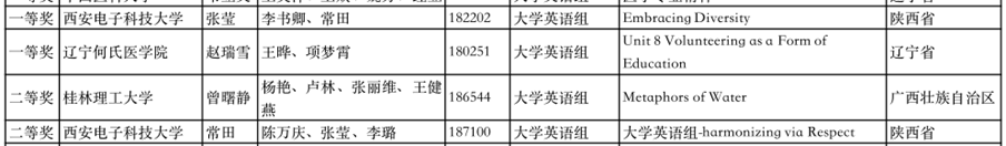 本次比赛中,best365官网登录入口陈争峰团队(王雅萍、冯延琴、徐艳琴、李文兰)、王丽莉团队(廉虹、邓婷、王俊、曹志宏)、赵小溪团队(任静、马琪、彭瑾、陈万庆)获大学英语组特等奖,张莹团队(李书卿、常田)获大学英语组一等奖,常田团队(陈万庆、张莹、李璐)获大学英语组二等奖,罗铮团队(刘一鸣、朱琳菲、高鹏、李长安)获英语专业组一等奖。