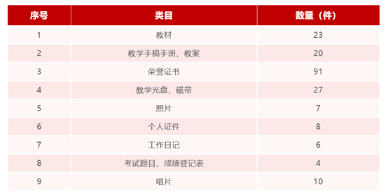 秦荻辉教授捐赠的档案包括英语教材和教案、本人录制的教学光盘、本人制作的教学录音带、英国的语言唱片(1套)、美国的语法手册(1套)、西军电编俄语教材书、西军电编俄华词典、7648部队编德汉电信词典、录取通知书、毕业证书、转业军人证明书、军官健康证、陆军学员肩章和领章、总字411部队学员出入证、个人荣誉证书、职业资格证书、聘书等各类档案资料,共计170余件。