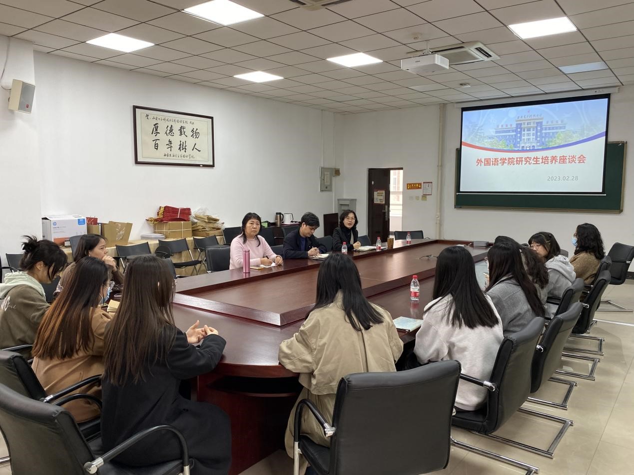 (通讯员 石佳凝)为进一步推进我院研究生教育工作,全面培养顺应时代发展的高质量研究生,2月28日下午,在信远II区424会议室举办了我院研究生培养座谈会。副院长曹志宏、MTI中心主任周正履、研究生教学秘书许小花老师出席会议,来自各年级的十余名研究生代表参加了座谈会。