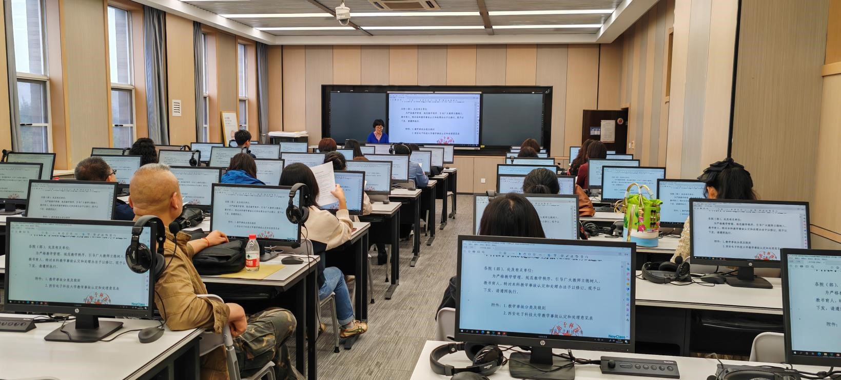 会议第二项由英语系主任任利华向大家再次梳理课程教学归档材料的规范化要求,通过展示《综合英语》课程的归档材料,任利华逐一讲解容易被大家忽略的细节和要求,并要求英语系各位教师再次查漏补缺,进一步完善各门课程的教学材料归档。