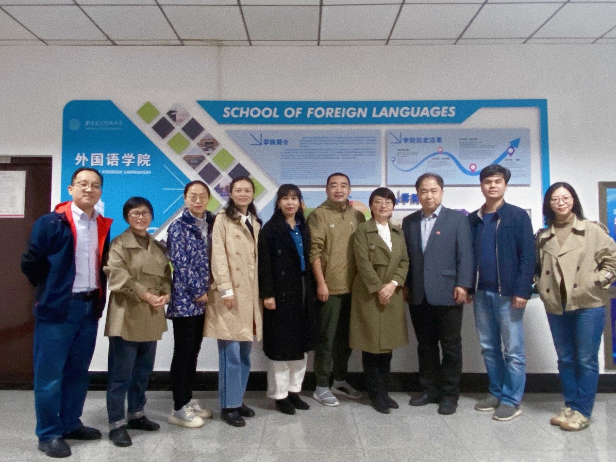 (通讯员:刘一鸣)10月18日下午,赣南师范大学best365官网登录入口副院长范晓红、大学英语教研室主任谢敏、英语教研室主任周燕、商务英语教研室主任方鸣、日语及第二外语教研室主任施万里、外语专业实训教研室主任张龙等一行六人来best365官网登录入口调研,副院长李长安、大学英语公共课程组负责人陈万庆、MTI中心主任周正履、日语系主任王坤、大学英语二部副主任任静、研究生英语教学部副主任刘一鸣等参加调研。