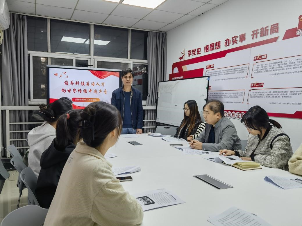 “‘中国式现代化’如何翻译?‘人类命运共同体’用英文怎样表达?人民军队传承的‘红色基因’究竟是什么?”李长安老师抛出的一连串问题引发了在场同学的热烈讨论。李老师谈到,“习近平总书记在给外文出版社外国专家重要回信中有这样一句话‘用融通中外的语言、优秀的翻译作品讲好中国故事,引导更多外国读者读懂中国’。每个职业都应有着自己的使命感,而翻译的使命感便是‘翻译中国’。中国式现代化进程中需要继承和弘扬老一辈翻译家求实、求真的风范和严谨治学、淡泊名利、潜心研究的奉献精神,当然也需要创新思维去攻克难关、推动发展。同学们应当充分利用研究生学术年会、学术讲座、学术论坛、科研项目等拓宽视野,挖掘自身创新潜力和解决实际问题的能力。”
