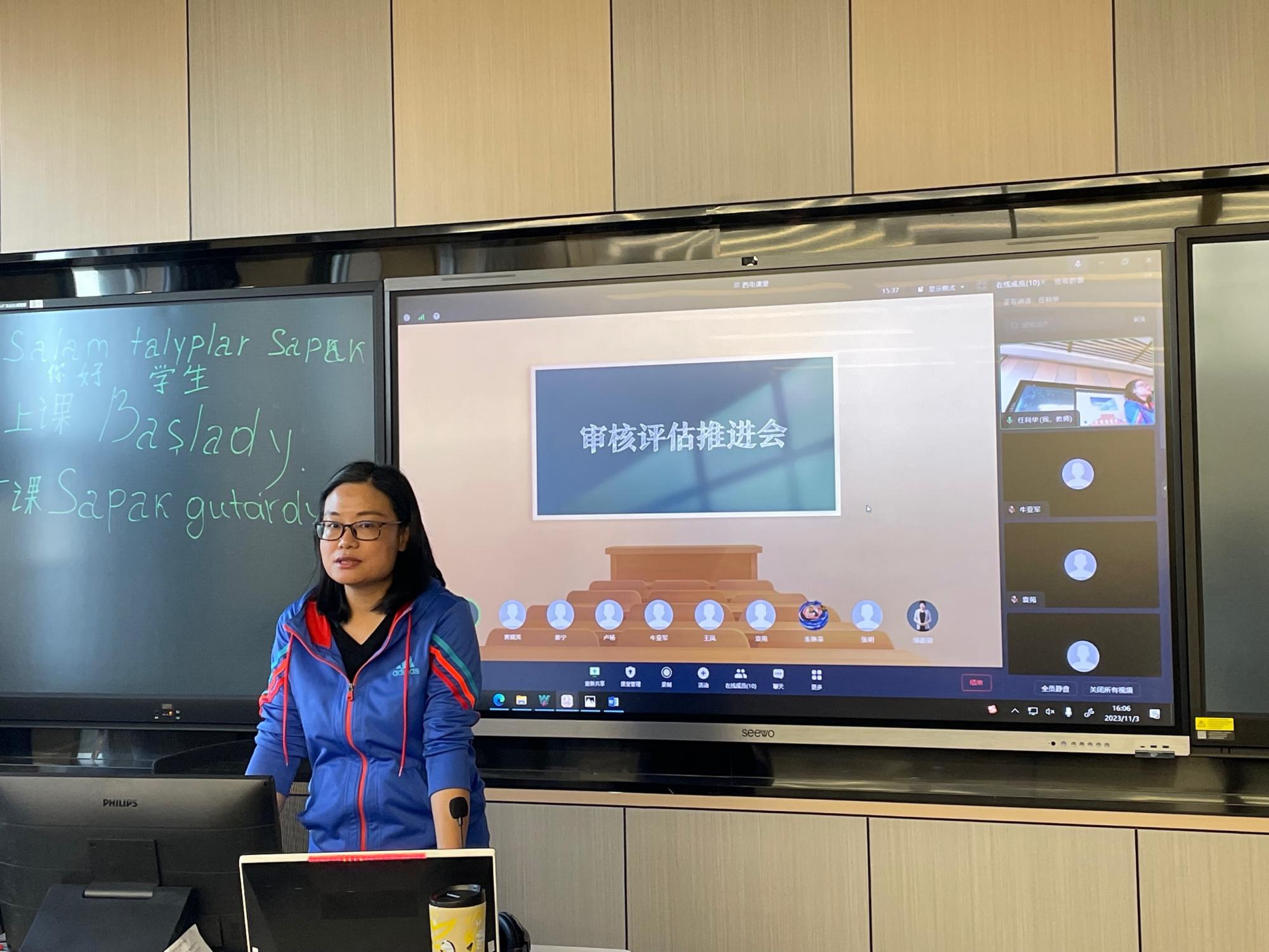 (通讯员:高鹏)11月3日下午,best365官网登录入口英语系和翻译系教师在信远楼505教室线上线下同步召开了题为“提升教育质量,推进教学改革”的本科课程质量专项检查及教育教学审核评估推进会。会议由英语系副主任郭晓华主持。