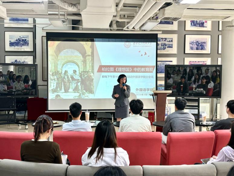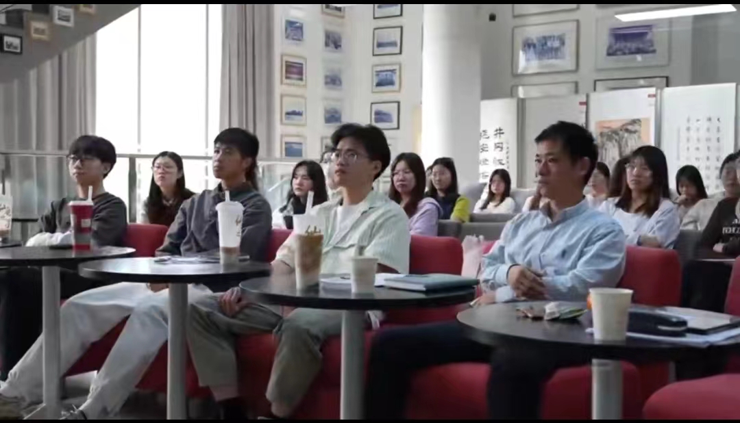 王凤教授分别从“教育的本质是什么”、“谁接受教育”、“怎样进行教育”、“为什么要接受教育”、“有何启发”这五部分内容展开论述,深入剖析柏拉图《理想国》中蕴含的深邃教育理念,带同学们一同领略这位古希腊哲学大师的思想精髓。她指出,柏拉图认为教育的本质就是心灵转向。她解读了书中非常著名的洞穴隐喻,表示囚徒走出洞穴看到真实世界的过程,象征着他通过接受教育从而心灵上升到善。此外,王凤教授对比了柏拉图与《论语》中的教育观念,指出了两者的异同,并探讨二者对当代教育理念的启示与影响。“费朗西丝·培根在《论读书》中说道:‘读书足以怡情,足以博彩,足以长才’,阅读是开阔视野,启迪智慧的重要途径。”分享接近尾声时,王凤教授鼓励大家坚持阅读经典,深入思考,持续追问,让精神在阅读中不断升华、丰盈。