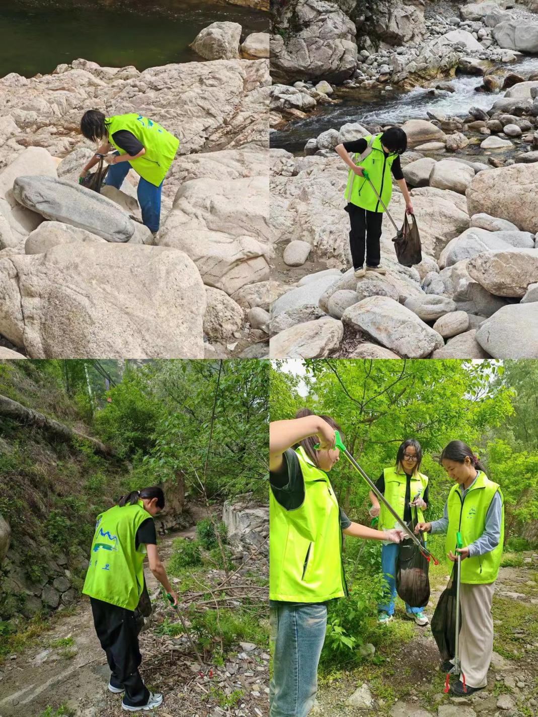 秦岭拥有得天独厚的自然风光,但人为垃圾的存在会破坏其原有的美丽和生态平衡。参观结束后,在老师们的带领下,各位同学穿上马甲,纷纷变身“秦岭生态卫士”,手持卫生钳和塑料袋开始了清岭活动。沿着河道,师生们认真清理着烟头、塑料等垃圾,以自身行动,积极参与到秦岭生态环境保护中来,为维护秦岭的青山绿水贡献出自己的力量。