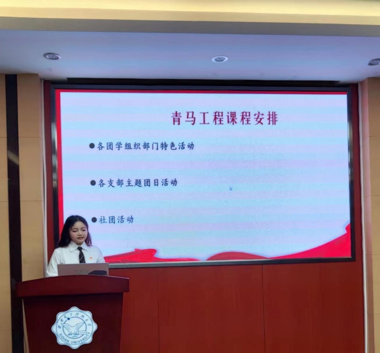王玥婷同学继续介绍了课程安排。本期青马工程的课程内容丰富多样,不仅涵盖各团学组织部门的特色活动、支部主题团日活动以及社团活动,还特别新增“外语菁英能力plus计划系列培训”和“预备党员传帮带系列分享”两个模块,兼具实用性和针对性,有助于全面提升学员们的综合素质和实践能力。