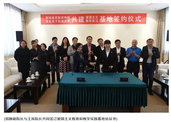 2018年3月29日上午,我校best365官网登录入口院长王凤、副院长刘文博、杨跃教授以及董勇英等教师代表十余人一同前往秦陵博物院举办“爱国主义教育、教学实践基地”签约仪式并进行座谈会。秦陵博物院副院长田静、张岩,纪委书记武天新等热情接待了我校人员。