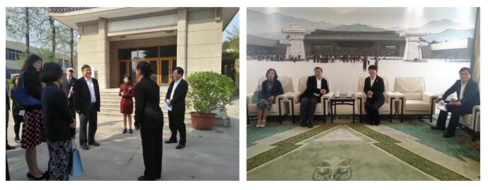 员进行深入交流。秦陵博物院表示可为我们提供官方标准解说和语言形体训练等相关方面的培训,并由专业老师带队接待外国游客进行实地演练,充分发挥实习学生的知识才能,为学生提供一个良好的实习锻炼平台。