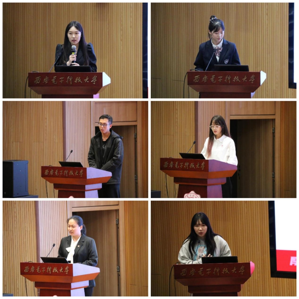 接着,答辩正式开始。在加油团的呐喊助威声中,第一位候选人曹莹同学走上舞台。她丰富的履历、耀眼的成绩让同学们赞不绝口,台风稳健、光彩夺目,让人心生向往。紧随其后的是洪志多同学,她拥有出类拔萃的专业成绩,英辩队出身的她在评审团刁钻的问题前应对自如,妙语连珠,令人折服。后面几位候选人各有千秋,每一位都很优秀,但又鲜活生动,独特而有个性。王瀚松同学没有华丽的展示,朴实无华的PPT勾勒出他精彩的人生履历,自信的语气挥洒自如。吴帆同学出色的翻译经历令人羡慕,一个个实打实的翻译数据让同学们意识到实践出真知的重要性。年纪最小的杨夏润同学,在强大的对手面前展现了良好的风采和心态,不卑不亢、踏实前行。最后一位出场的巨奕宁同学,与同学们分享了自己从社恐到今天聚光灯下的自己这一路走来的心路历程,读万卷书行万里路,她走过很多国家、印证很多猜想、丰富很多人生体验,在旅行和思考中看到自己的另一个可能。