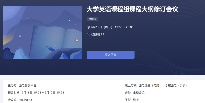 (通讯员:马琪)5月19日,大学英语课程组启用西电智课平台虚拟教研室,研讨课程大纲修订工作,各课程负责人参加此次会议。此次修订包括大学英语系列课程、创新大学英语系列课程、高级英语系列选修课程和通识类课程,合计35门课程。会议由大学英语课程组组长陈万庆主持。