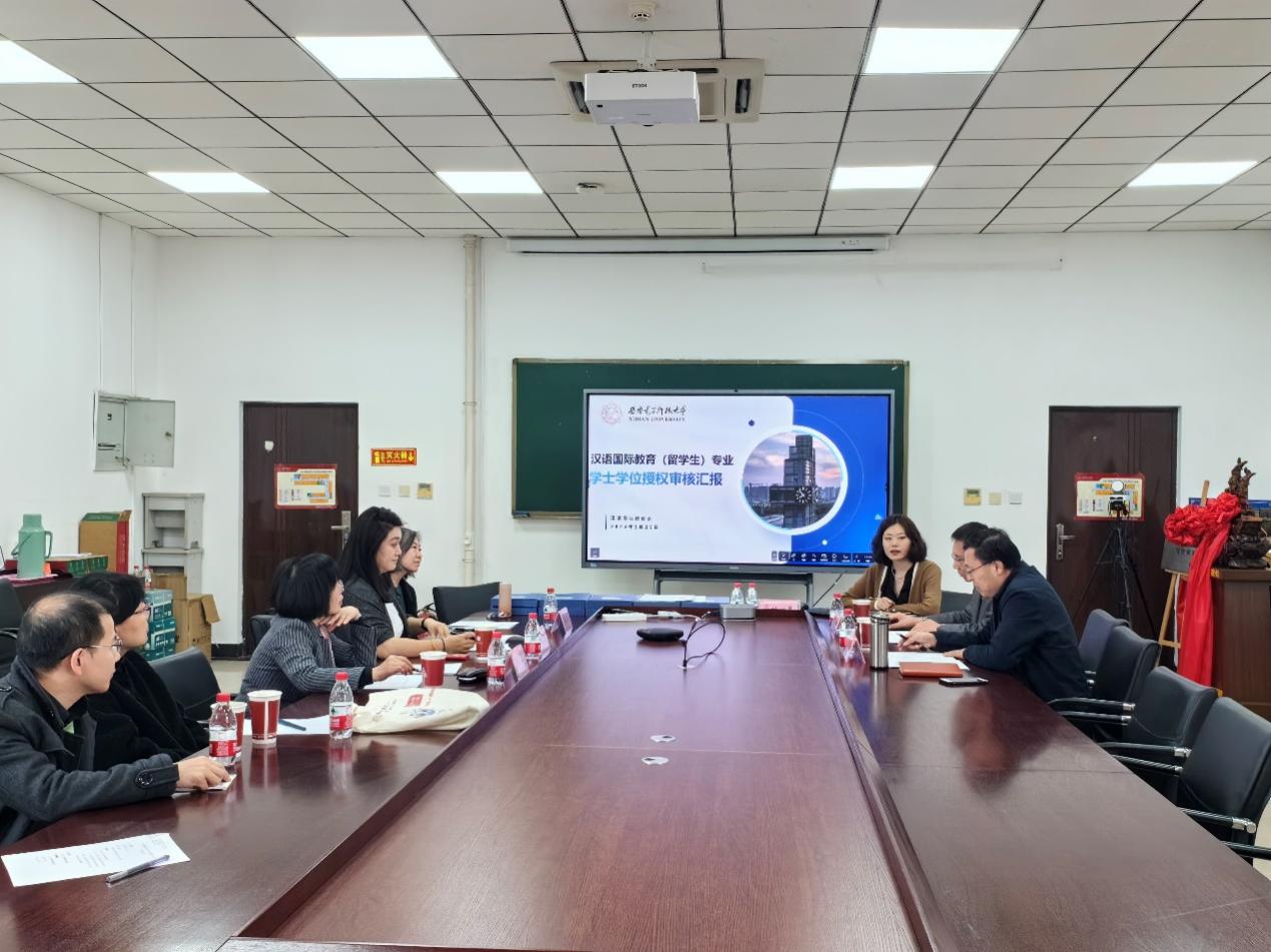 汉语国际教育系副主任桂一星围绕专业现状、师资队伍结构、人才培养成果、教学科学情况及专业未来发展规划等方面详细汇报了汉语国际教育专业自招收来华留学生以来的基本情况。与会专家组成员在听取专业情况汇报后,仔细查阅专业培养方案、核心课程教学大纲等材料,认真调取相关教学档案,前往教室开展实地听课,与任课教师代表进行座谈,并对汉语国际教育专业的人才培养特色、核心课程与教材建设、师资队伍博士化与国际化建设、专业发展规划等方面提出有针对性的宝贵意见。最后,评审专家组通过投票方式,一致同意汉语国际教育专业通过新增学士学位评审,并按程序上报学校及上级教育主管部门。