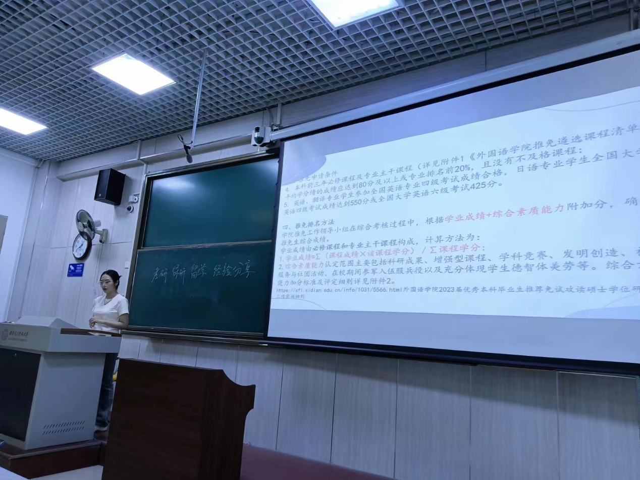 19级孙之涵成功保研至本校英语语言文学专业,她向同学们分享了本校的保研政策,帮助同学解读学院政策。她告诉同学们在前期准备中,要注意信息的收集与专业选择。信息收集可以通过公众号、官网等多途径收集,建议多与老师、同保研的学生交流,减少信息不对等;专业选择上要明确自己想读的研究生类型与想读的专业,可以多方了解心仪的院校专业与导师;在时间规划方面,建议大家参加夏令营,扩大投递学校的范围。